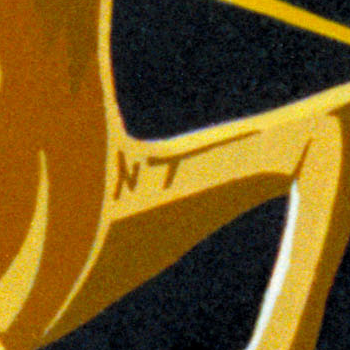The MSC artist who produced the final artwork for the Apollo 13 patch, Norman Tiller, secreted his initials on the left foreleg of the rightmost horse — a detail too small to make it into any of the embroidered versions of the patch. It did, however, make it into the beta-cloth version — though barely legible.