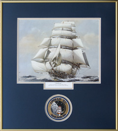 Apollo 12, with artwork by Jack Spurling. At the time he designed the patch, Victor Craft was employed by the RCA Services Company, and they released several photos to the press of Mr. Craft, one of them showing him at his drafting table with some books on clipper ships. It was pretty clear that this particular painting was Craft’s main inspiration for the design of the ship on the patch.