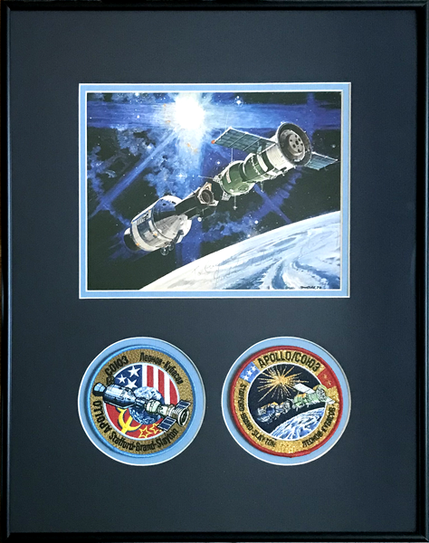Apollo/Soyuz Test Project, with a lithograph of artwork by Robert McCall. I’ve included Jean Pinataro’s original patch design.